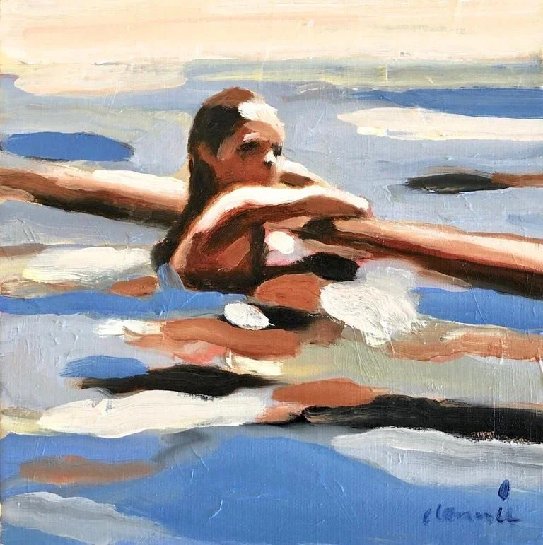 Then, over my right shoulder, a man on a raft of his own floated up to me. He seemed familiar somehow. Someone who knew us. He had dark hair, but I didn’t know who he was. Very calmly, without yelling, he told me, “Look over there.” When I did, I saw my daughter as a teenager, maybe 16 or 17, in a two-piece red bathing suit, straddling a surfboard and making her way towards the shore. Her hair was up in a curly ponytail on top of her head. She never heard me yell at all. She was just doing her thing! As far as dreams go, this isn’t particularly earth-shattering. It was very upsetting to me at first, but, unlike a “nightmare,” I was able to follow it through to its happy ending.